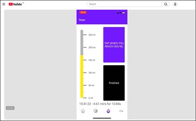PQtap enables users to collect uroflowmetry-type data using a mobile device and a simple marked jug. Measurements are automatically stored on the device, allowing repeated data collection during normal daily activity. The app includes a plotting function and displays commonly used parameters, including flow rate (ml/s), time between voids (h), volume per hour between visits (dl/dt), and total urine volume over a 24-hour period (l), provided it is used at each void.